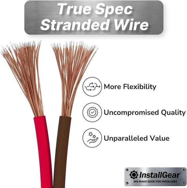 100-FEET ( 30.5 m) [ RED/BLACK 16 GAUGE SPEAKER WIRE ] - The lower the gauge number, the thicker the wire. Thicker wire presents less resistance to current flow.
