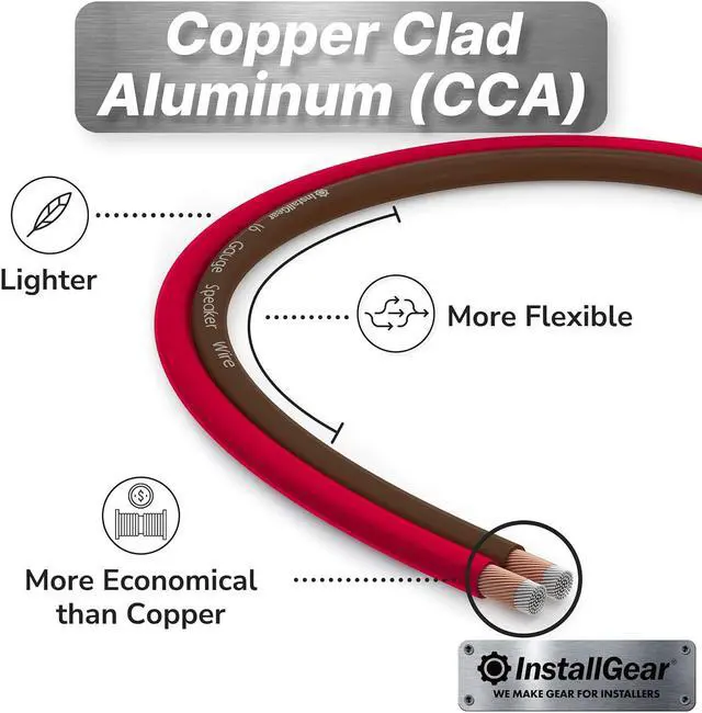 COPPER CLAD ALUMINUM (CCA) - CCA wiring provides a good conductor for transmitting audio. This is the most economical option when choosing car speaker wire.