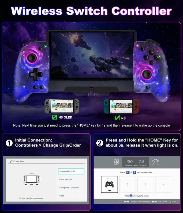 Ergonomically Designed Wireless Switch Controller: One-piece joypad controller compatible with Switch/Oled, featuring a comfortable large switch controller grip that perfectly fits handheld mode, it offers ultimate comfort and control, ensuring no hand fatigue during long gaming sessions. The upgraded hall effect joystick that provides sensitive, precise and seamless control without any drift and deadzone, easy elevate your gameplay and take it to the next level.Best for Christmas gift