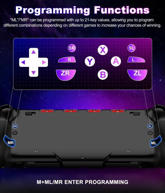 Programmable Pro Controller Switch Gamepad: Customize your controls with single or multiple mappings, including A+B+Y+L+ZL+R+ZR+D-pad. The loop programming buttons enable endless cycling of your personalized combination skills. This innovative handheld controller enables you to effortlessly execute efficient combos, to achieve an unparalleled gaming experience, also minimizes button abuse and clicks, extending the lifespan of the controller