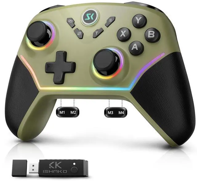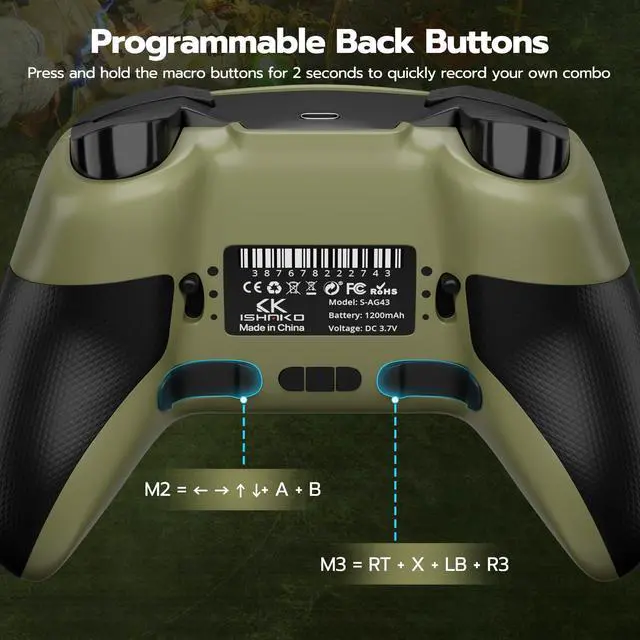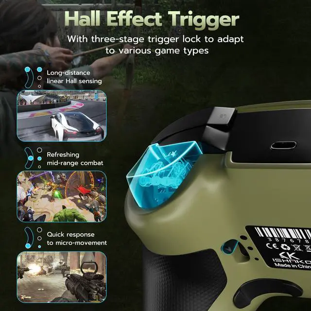 ISHAKO Wireless PC Controller, Hall Effect Gaming Controller with 1000Hz Polling Rate, 3-Stage Adjustable Triggers, 4 Macro Back Buttons, Bluetooth/ 2.4G /Wired Gamepad Compatible with Windows PC