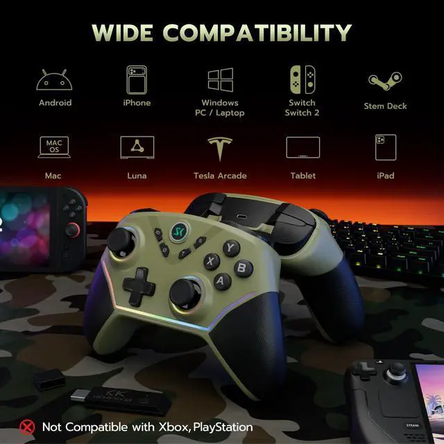 STABLE TRI-MODE CONNECTIVITY Experience seamless gaming with three connection options: 2.4G wireless, Bluetooth, and USB-C wired. Unlike many controllers that suffer from frequent disconnections, our upgraded wireless technology provides a stable, lag-free signal. It is perfectly compatible with Windows 10/11, Switch, Switch 2, iOS, Android, and Steam Deck.