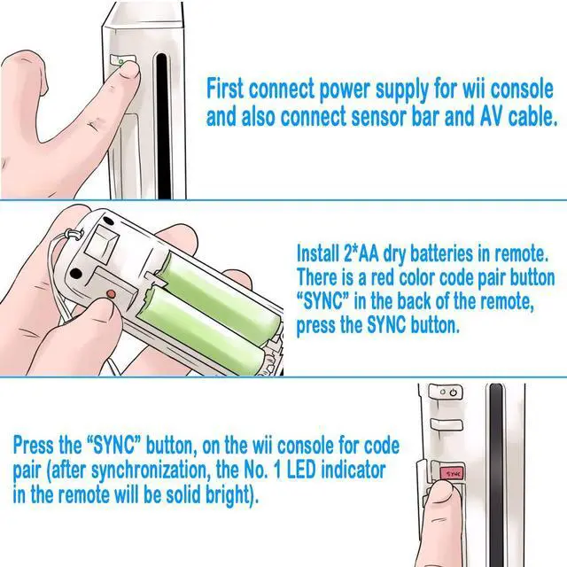 1 For Wii U console, please open the Wii U Menu and then follow the on-screen instructions and press SYNC on the wii controller to finish the pairing procedure.