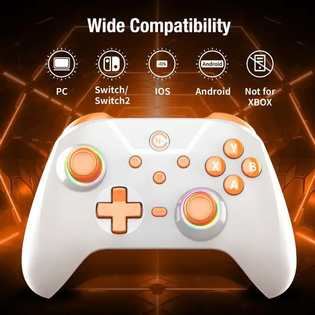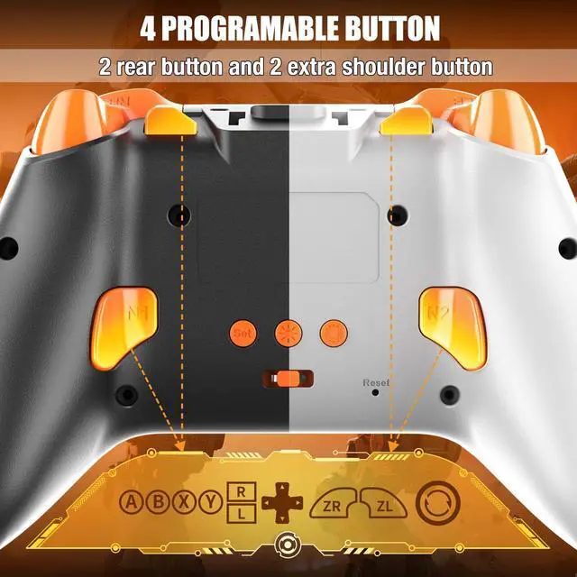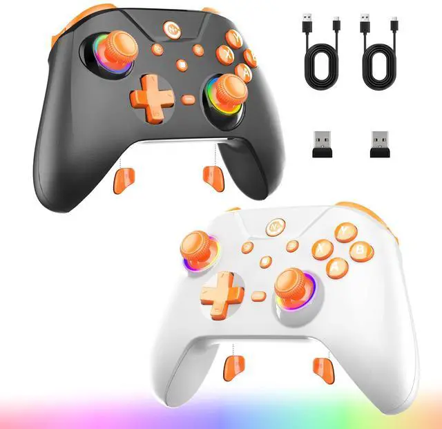 Dual-pack PC game controller, wireless controller with 2 back buttons (N1, N2), 2 shoulder buttons (M1, M2), RGB lighting, Hall effect triggers, 1000Hz polling rate, compatible with Windows PC, Switch