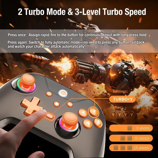 RGB LightingThe unique RGB lighting design of the controller immerses oneself in a fascinating exploration of the universe. The RGB indicator lights have 9 adjustable colors, taking you into the world of Star Domain gaming. In addition, the lights can be turned off to increase flexibility.