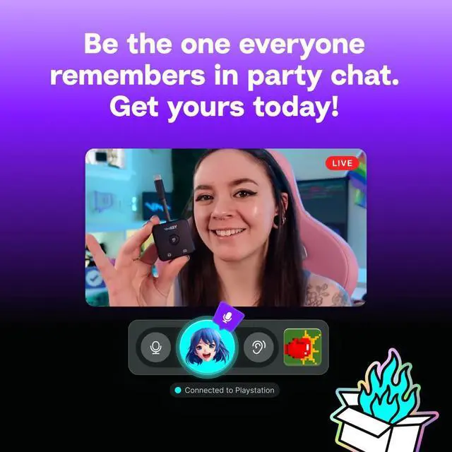 Voicemod Key is a little piece of hardware that connects a headset, your smartphone, and a gaming console together to allow real-time voice changing and soundboards on console voice chat. Previously, this was impossible—and by far our most-requested feature. And now, we’ve made the impossible, possible.
