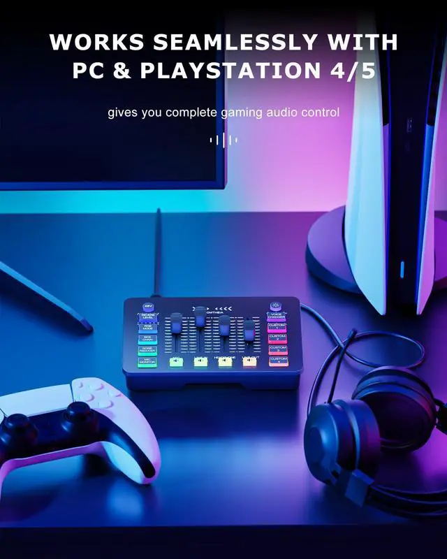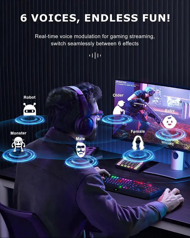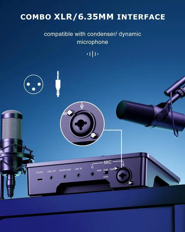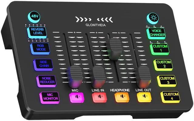 Gaming Sound Board Audio Interface Voice Changer for PC PS4 PS5 Streaming Mixer Soundboard Compatible with XLR Condenser/Dynamic Microphone