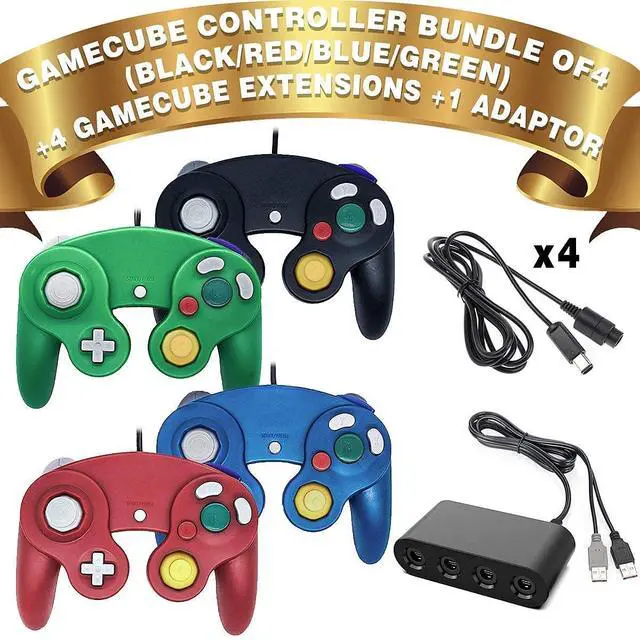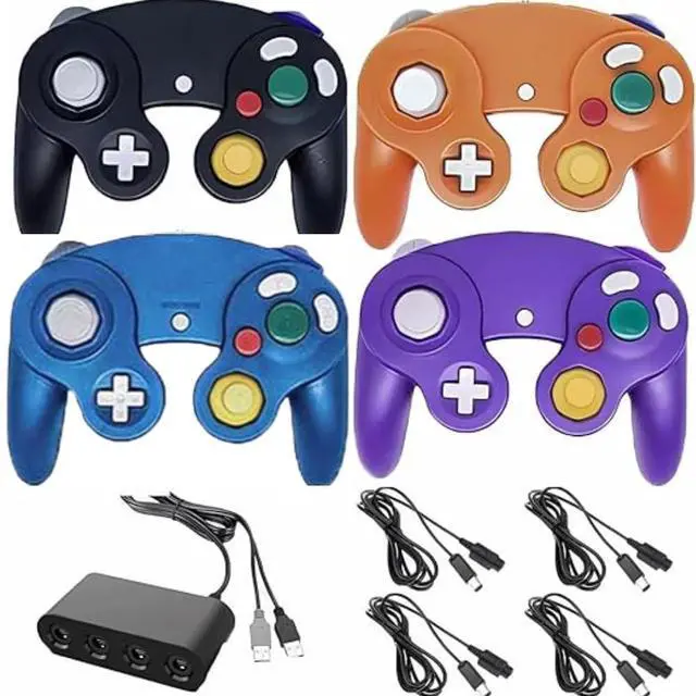 • Super GameCube Bundle: The kit includes four (Sliver/Black/Orange/Purple) controllers for Game Cube; a 4-port adapter for Switch/PC(USB)/Wii U; and 4 extension cords.