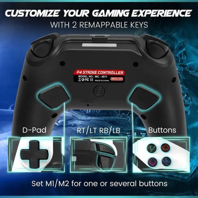 Experience next-level control and comfort with the Megacom P4/PC Wireless Bluetooth Controller. Designed for serious gamers, this versatile gamepad is fully compatible with P4, P4 Pro, P4 Slim, and Bluetooth-enabled Windows PCs, giving you the freedom to play your favorite games wirelessly. Equipped with two rear remappable buttons, the Megacom controller empowers you to customize your gameplay for lightning-fast reactionsperfect for competitive action in FPS, racing, or fighting games. Whether you're battling enemies or racing at top speed, youll always be one step ahead. Immerse yourself in rich, responsive feedback thanks to dual vibration motors and a built-in speaker that brings in-game sounds to life. The integrated 3.5mm audio jack ensures clear communication and audio playback, while the multi-touchpad provides added precision and control, especially for action-packed titles. The rechargeable battery ensures hours of uninterrupted gameplay. No more replacing batteriesjust plug in and recharge with ease. With an ergonomic design built for comfort and durability, the Megacom controller is ready for every challenge.