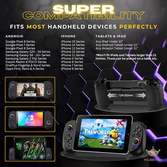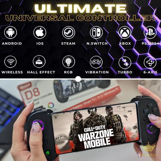 D8 Smart phone gaming controller for Android - Samsung Galaxy S23, S24, S25, S22 Ultra/ S22+/S22/S21 Ultra/S21+/S21/S20 Ultra/S20+/S20/S10e/ S10+/ S10/S9+/S9/S8+/S8/Galaxy Note/One Plus/TCL/Motorol/Huawei/Motorola/Oppo and more android phone. Tablet controller for Samsung Galaxy Tab, Lenovo Tab, Yoga Tab, Nokia T20, Smart Tab, HUAWEI MatePad, Samsung Galaxy S23 Ultra, Motorola Edge+ (2023), Google Pixel 7a, Samsung Galaxy A54 5G, OnePlus 11, Google Pixel 7 Pro, Asus ROG Phone 7 Ultimate, Samsung Galaxy Z Fold 4, Asus Zenfone 10, Honor Magic 5 Pro, Honor 90, Huawei P60 Pro, Motorola Edge 40 Pro, Nokia XR20, Nokia G21, OnePlus Nord N30 5G, Realme GT 2 Pro, Xiaomi 12 Pro, Oppo Find X5 Pro, Vivo X80 Pro, Google Pixel Fold, Samsung Galaxy Z Flip 4, OnePlus 10T