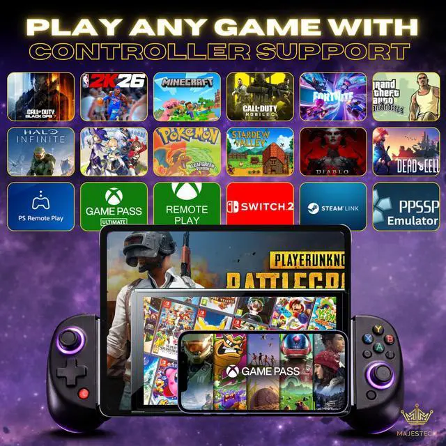 The majority of controller-based games available on the App Store, including popular titles like Palworld, Call of Duty Mobile, Roblux, Dead Cells, Grand Theft Auto 5, GTA 4, EA Sports 24, Fifa, Fortnite, Apex, PUBG Mobile (not for iOS), Genshin Impact, Minecraft, Pokemon Go, NBA, GTA, Clash of Clans, PUBG Mobile Diablo Immortal, Minecraft, Pixel Gun 3D, Asphalt 9: Legends, RetroArch PPSSPP Emulator Games etc. iOS users can directly connect and play without the need for any additional app downloads. However, for certain games like PUBG on Android phones, you'll need to install the 'ShootingPlus V3' App.