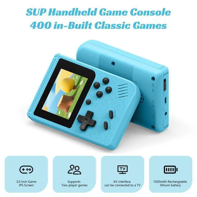 400 Pre - installed Classic GamesThis mini handheld console comes with 400 video games, designed to bring endless fun to young players. The games are categorized into four major types: casual, puzzle, shooting, and sports. You can easily pick your favorites without much hassle.