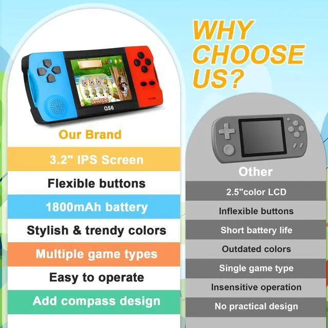 (Notice for 2026 Latest Version: The upgraded model features a 16-bit processor for smoother gameplay, a 3.5-inch IPS screen (upgraded from 3.2-inch LCD), and more built-in games. Please note: TV connection function has been removed to enhance portable performance. Perfect for handheld gaming on the go!)