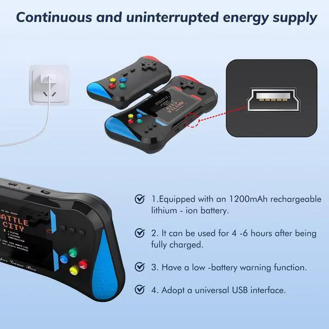 Enjoy classic gaming on the big screen! Our handheld game console connects easily to your TV, bringing back your favorite childhood games in full display. Relive the nostalgia with modern convenience—perfect for family fun, parties, or solo gaming sessions!
