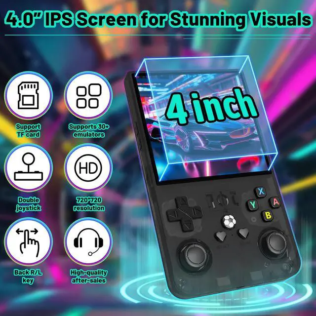 R36s max Retro Gaming Console Handheld Game Console, Game Emulator Handheld Console, 4K HD 4.0" IPS Screen, Preloaded 18, 000+ Retro Games Portable Video Games (Black 64GB MAX)