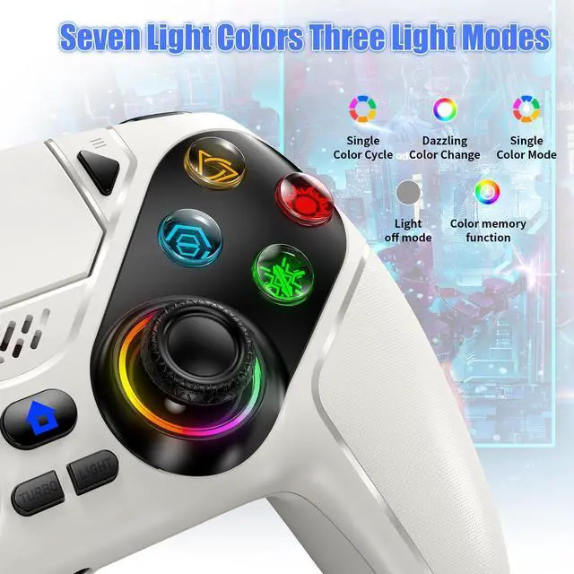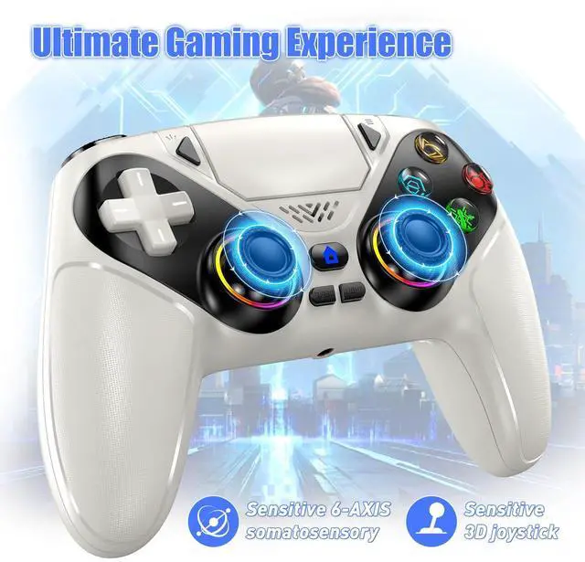 LED Wireless Controller for PS5, Compatible with PS5 Pro/Slim/PC, Dual Vibration, Macro/Turbo Function, 3.5mm Audio Jack, 6-Axis Motion Contro Gamepad with Speaker(White)