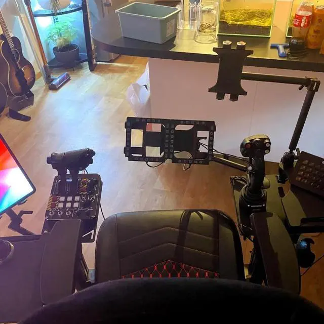 The goal of the chair mounts is to transform your own office chair into a stable cockpit without major changes.