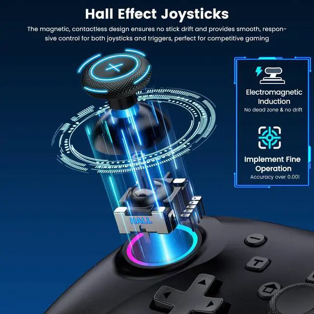 Wireless PC Gaming Controller - Enhanced Wireless Blue-tooth Controller with Hall Joysticks & 1000mAh Battery- Android/iOS/Steam and Switch 2/1 with Turbo Controller with Programmable