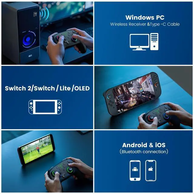 PC Controller with Multi-Platform : Plug-and-play wireless PC gaming controller via included Blue-tooth receiver (2.4GHz stable connection) or use the 1.5m USB-C cable for wired PC controller mode. All games that natively support controllers can be played directly. Works for PC/Switch/Android HID games, and *iOS 13+ MFi titles*.