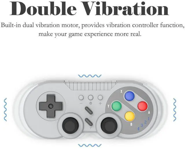 Support wake-up function, built-in gyroscope to provide motion control and built-in dual motor to provide dual vibration function.