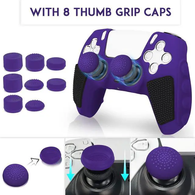 Anti-Slip PS5 Controller Skin, Soft Thicken Non-Slip Silicone Gel Protective Cover Case for PlayStation 5, 2 Pack with 8 x Thumb Grip Caps