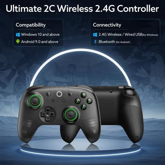 - & : The 8BitDo Ultimate 2C Wireless Controller seamlessly supports Windows 10 and above, plus Android 9.0 and above, making it the perfect gaming companion for PC and mobile enthusiasts. Features intelligent mode switching with a dedicated button that automatically adapts between 2.4G and wired connections for Windows gaming, while utilizing stable Bluetooth connectivity for Android devices, ensuring optimal performance and zero compatibility issues across all your favorite gaming platforms.