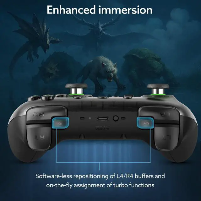 Ultimate 2C Wireless Controller for Windows PC and Android, with 1000 Hz Polling Rate, Hall Effect Joysticks and Triggers, and Remappable L4/R4 Bumpers (Transparent Black)