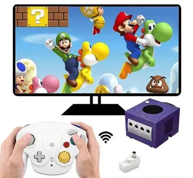 Turn on the NGC console and insert receiver into,install two dry batteries and turn on the swtich on the controller till indicator light is always on. don'thard push receiver into console to avoid damage.