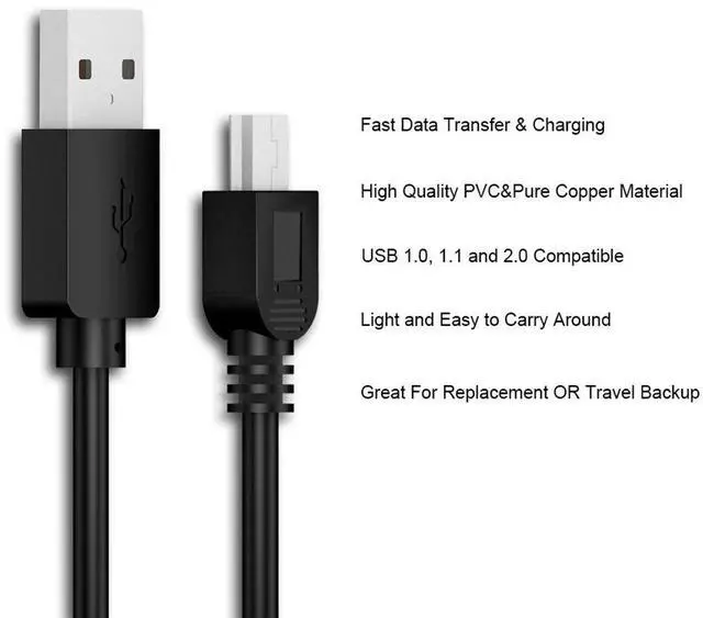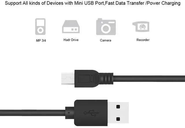 USB A to mini-B 5pin cable Compatible with USB specifications 1.0, 1.1, and 2.0;