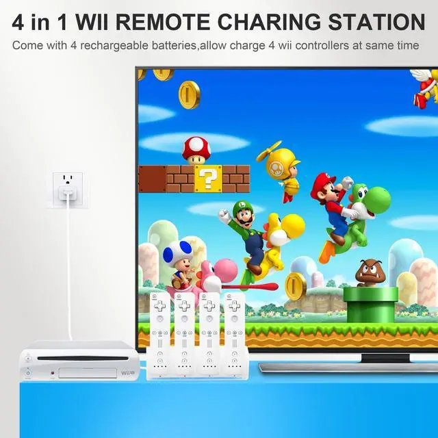- Fit for Wii and Wii U remote controller.It allows charge 4 remotes at the same time.