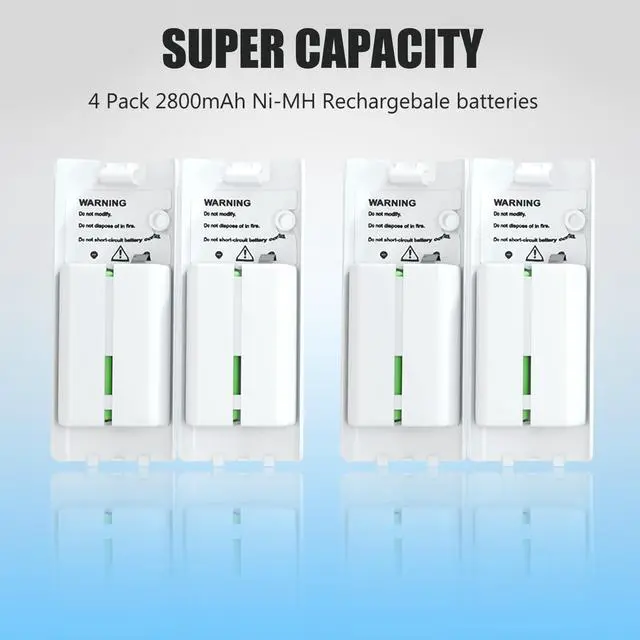- Come with 4 high-capacity 2800mAh Ni-MH rechargeable battery packs. No need to change the regular AA battery.Save money and protect the environment by using the rechargeable battery.