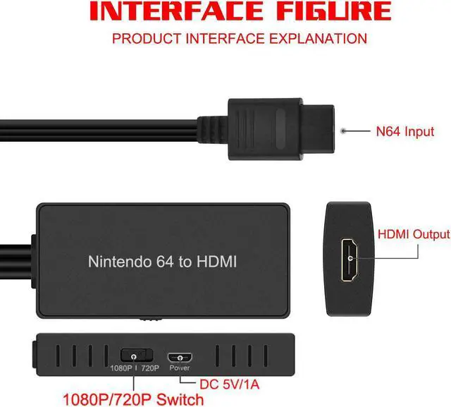 Note: N64 HDMI cable adapter is only compatible with N64, SNES, SFCNGC.