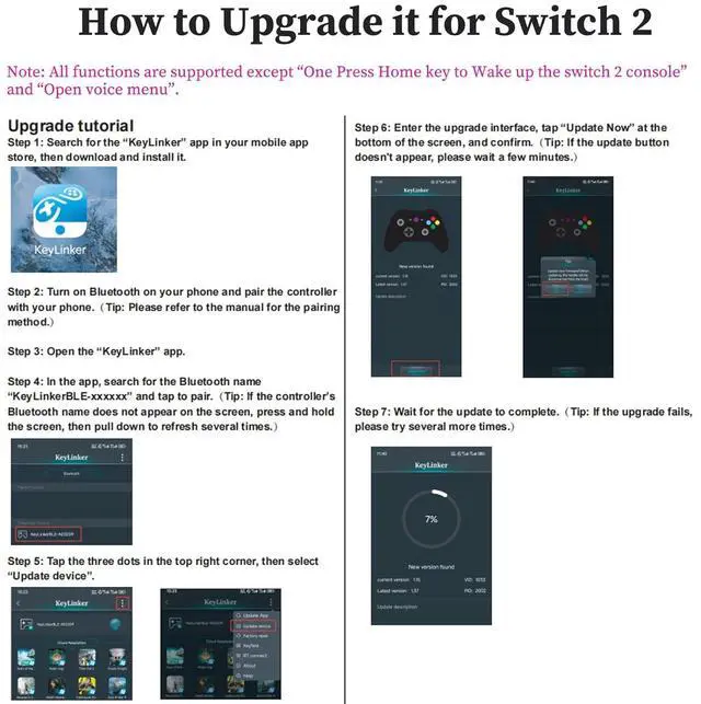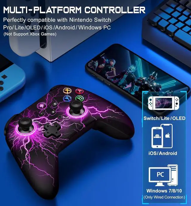 Switch Pro Controller is fully compatible with devices Switch/Lite/OLED, iOS MFi, Android HID Model, and Windows 7/8/10; There are 2