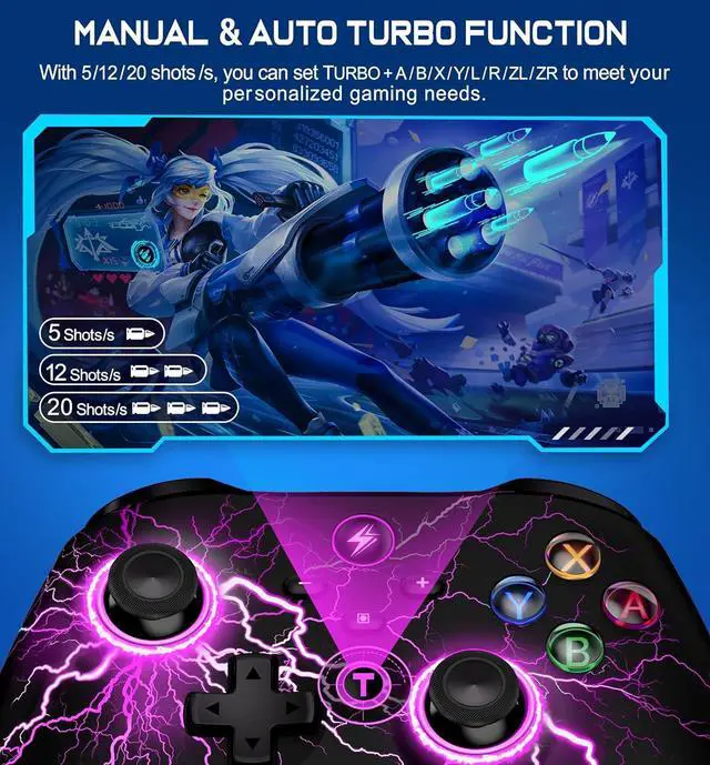 Mapping: single programming mapping; multiple programming mapping. Support Auto TURBO/Manual TURBO mode. You can set TURBO+A/B/X/Y/L/R/ZL/ZR to meet your need.