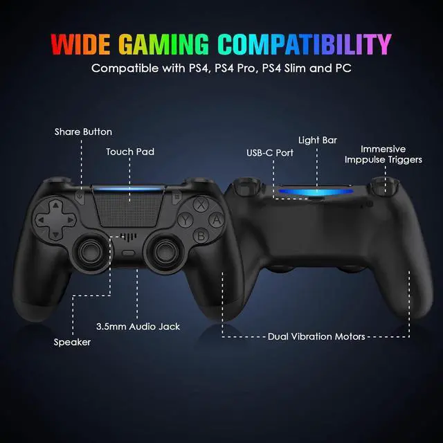 Stable Compatibility: These controllers are widely compatible with PS4/Pro/Slim consoles and PC. It supports USB wired connection.