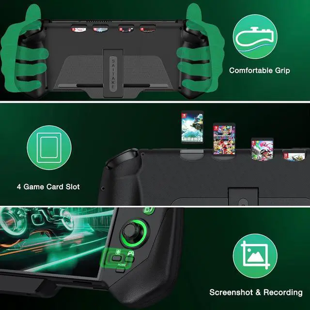 ERGONOMIC DESIGN SWITCH REMOTE The gamepad for nintendo pro controllers comes with a screenshot/recording function; the comfortable grip allows you to play games for a long time without feeling tired! And there are 4 slots on the top of the back of switch joypad controller to store game cards, so you can always find your favorite games