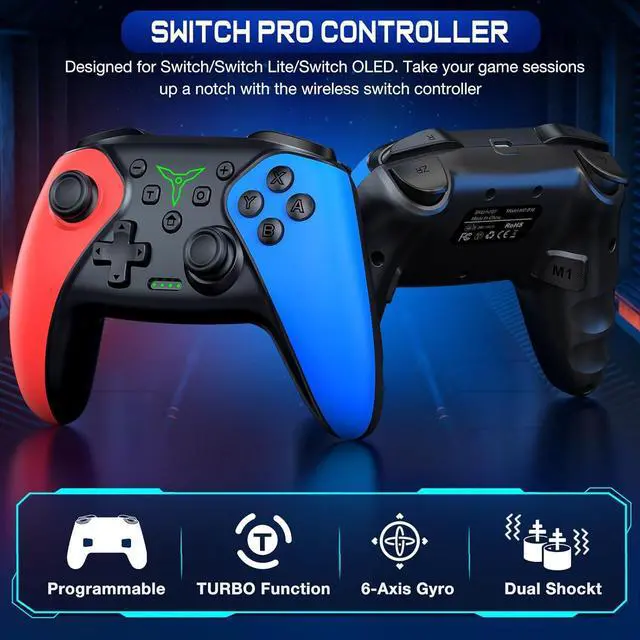 2 BACK PROGRAMMABLE BUTTONSSwitch pro controller with 2 back programming buttons, there are two modes, which are single programming or multi-programming. M1/M2= A+B+Y+L+ZL+R+ZR+D-pad, then you can use other fingers to operate more comfortably and centered. Switch controllers with the programmable buttons helping to minimize button abuse and stick clicking it can last more than several years with heavy use. (Not Support NFC Function)