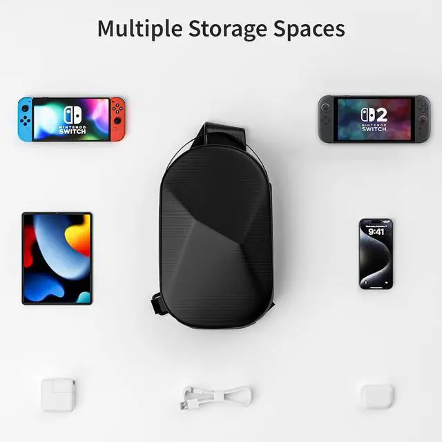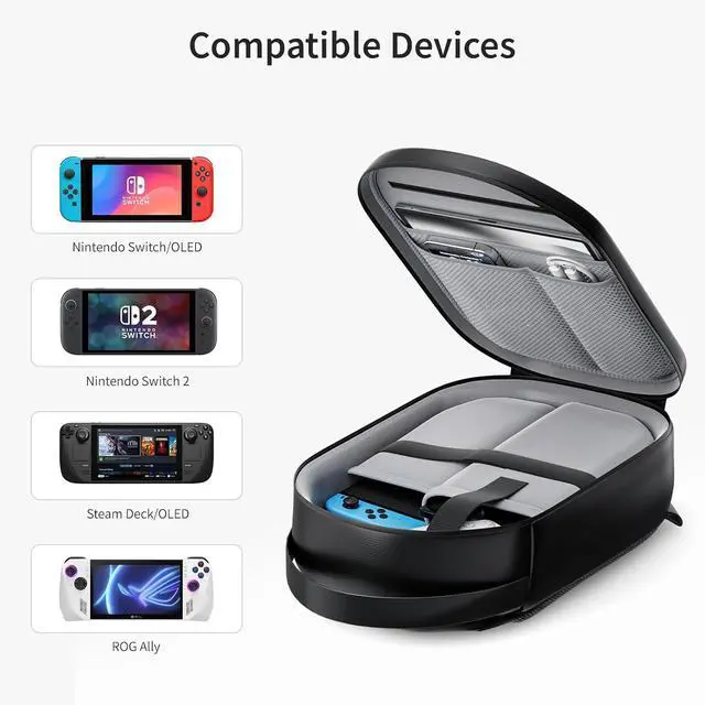 Large Capacity & Stylish: This sleek black backpack offers both style and functionality. It fits Steam Deck, Nintendo Switch, and tablets up to 13 inches, along with power banks and headphones. Ideal gift for gamers and tech enthusiasts