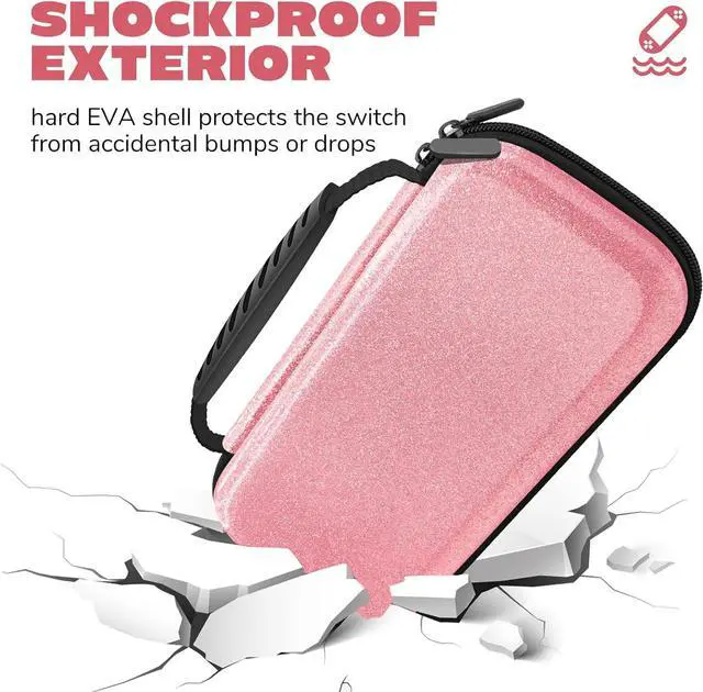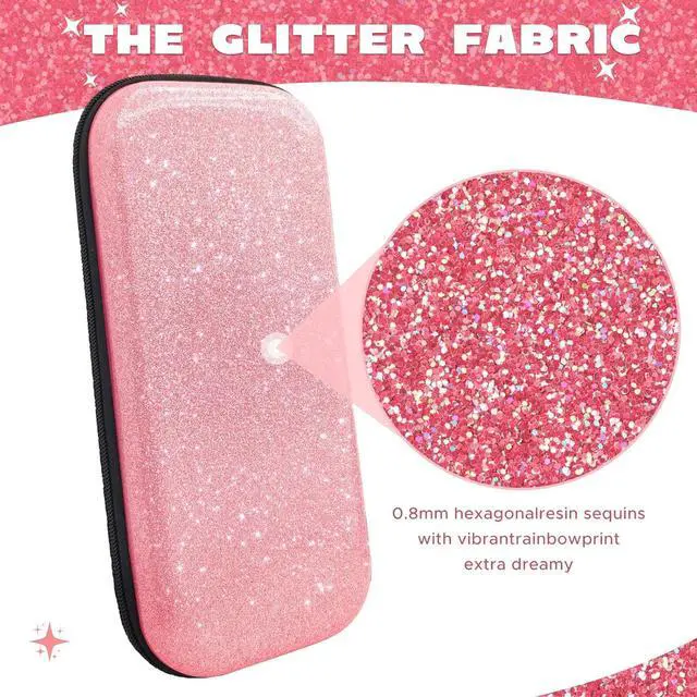 Glitter Carrying Case for Nintendo Switch/Switch OLED-Designed for Nintendo Switch and Switch OLED. The rubberized handle and lightweight design make it more portable and travel-friendly. Perfect for you to carry a Nintendo Switch console and accessories everywhere.