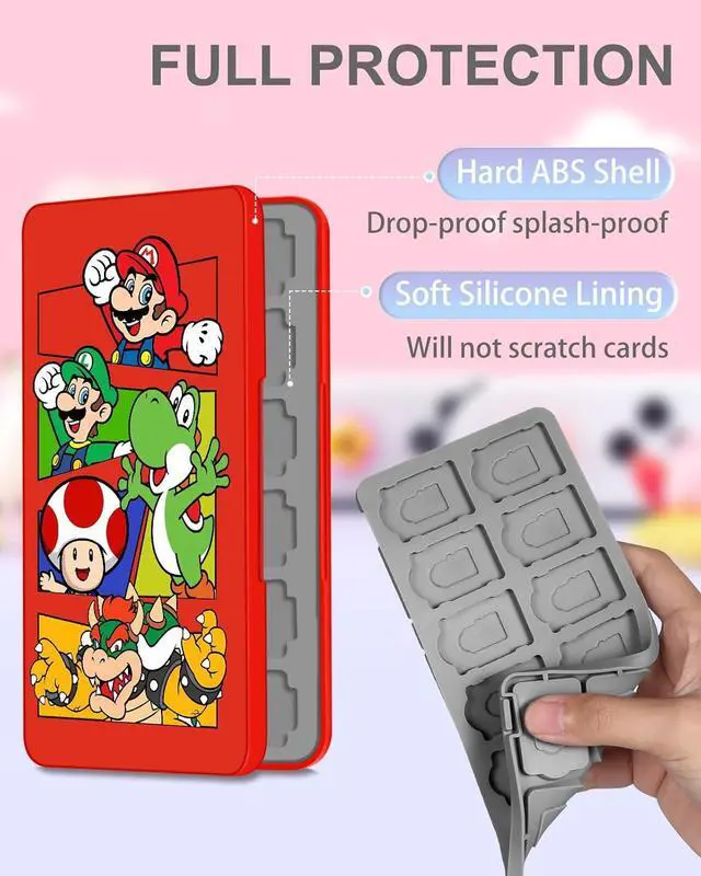 Full Protection: The outer hard shell is made of high-quality ABS material, which is waterproof, dust-proof, shockproof, scratch-proof, sturdy and durable, effectively protecting the for Switch game card from impact and falling. The interior cushion protector is made of soft silicon lining material, precise card position, ensure the for Switch game cards stay at place without slipping, which offers great protection your for Nintendo switch lite game cards