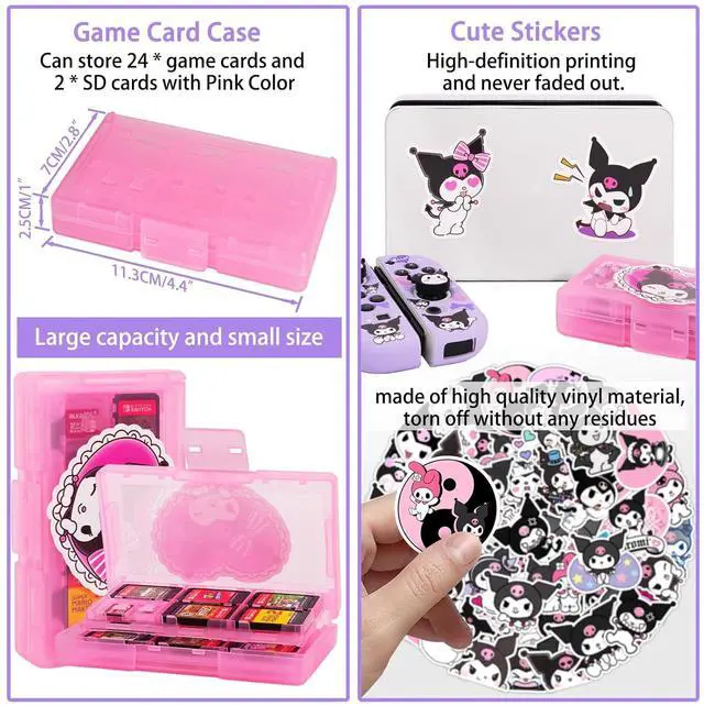[What You Get] Package includes: 1 * Switch Carrying Case & 1 * Soft Protective Case & 1 * Game Card Case & 50pcs Stickers & 2 * Screen Protectors & 2 * Cute Thumb Grip Caps.