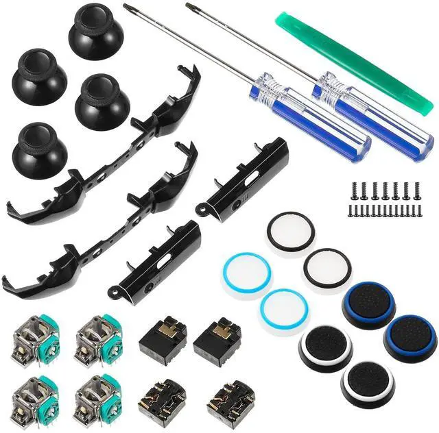 Replacement game controller kit: if your game controller component is broken and the earphone buckle is broken, dont worry, this combination can solve your problem; They can restore your controller to the original status without additional cost; It is also equipped with installation tools and button caps; It is simple and convenient to install and is the first choice for replacing accessories;