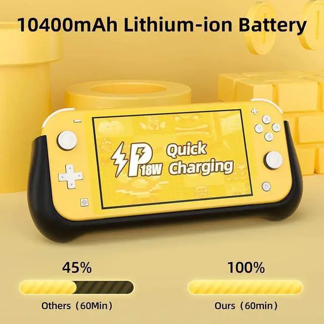 10000mAh Battery Portable Charger: The built-in 10, 000mAh rechargeable Li-polymer battery provides up to 160% extra life, keeping your Switch Lite powered for extended gaming sessions. The smart chip ensures safe charging from overheating, overcharging, and excessive current.