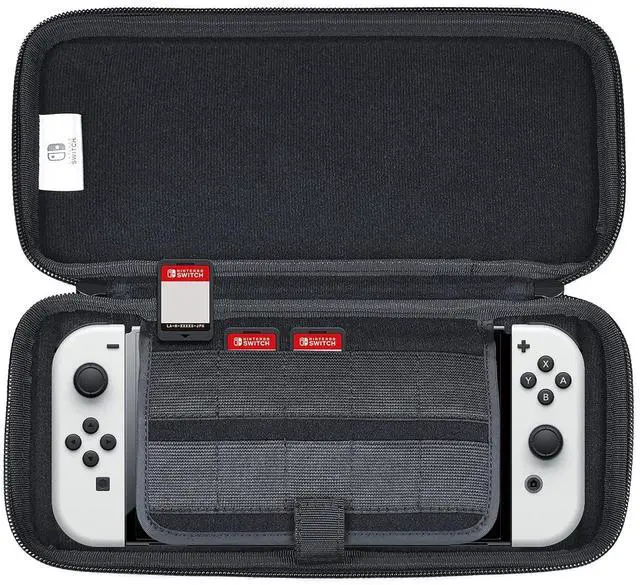 Compact Carrying Case for Nintendo Switch (OLED Model) Holds 10 Switch Game Cards and accessories High quality materials and construction Officially Licensed by Nintendo