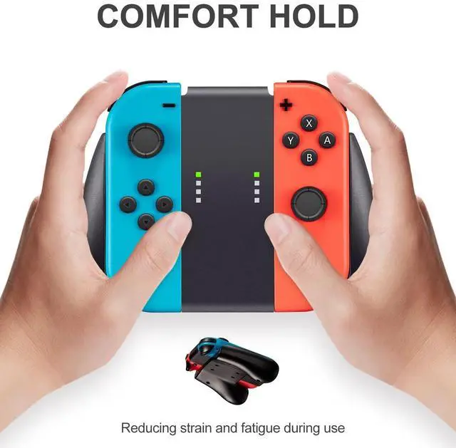 - PREMIUM QUALITY: Grip is made of high-quality rubbery plastic, not super hard plastic, so it's not slick and stays in your hand and has a very good feel to it. It has more of a soft/velvet feel to it though, which feels more comfortable to hold and is less likely to damage the joycons. These are much more comfortable than the official joycon strap, say goodbye to painful losses!