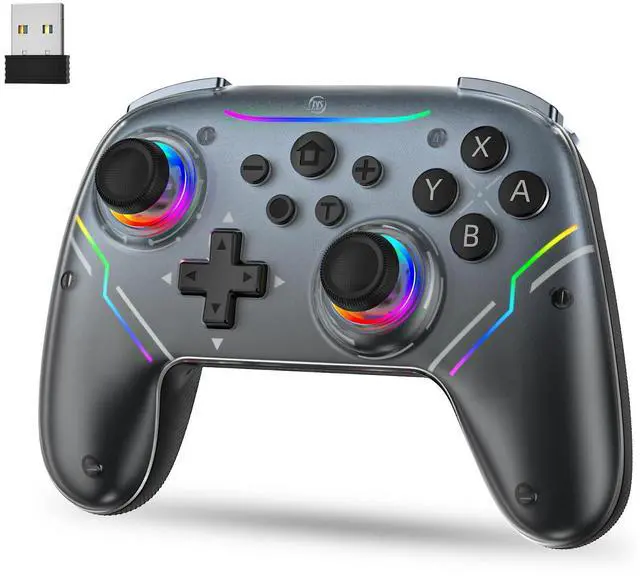 - [Polychrome Breathing LED]RGB Light Colors willChange Each Time you Press the Light Button. 4 Lighting Modes of this Switch Controller: RainbowStatic ColorBreathingColor Cycle Breathing( Note:All Settings are Automatically Saved including Brightness/Paused Effects)