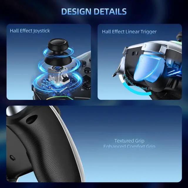 - [Low Energy Consumption, Long Battery Life]This Perfected Controller has a High-Performance Rechargeable Battery with AutomaticSleep, Charging Prompt and Low Voltage Warning. The High-Performance Built-in 800mAh Battery can Service for 8-10 Hours After Fully Charged, Make Sure you can Enjoy Games Longer without Interruption. Rechargeable via USB-C, it Ensures Uninterrupted Gameplay without the Need for Constant Battery Changes