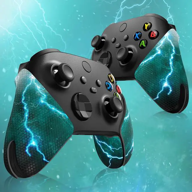 JAYSUING PlayVital Anti-Skid Sweat-Absorbent Controller Grip for Xbox Core Wireless Controller, Professional Textured Soft Handle Grips for Xbox Series X/S Controller - Green Storm Thunder