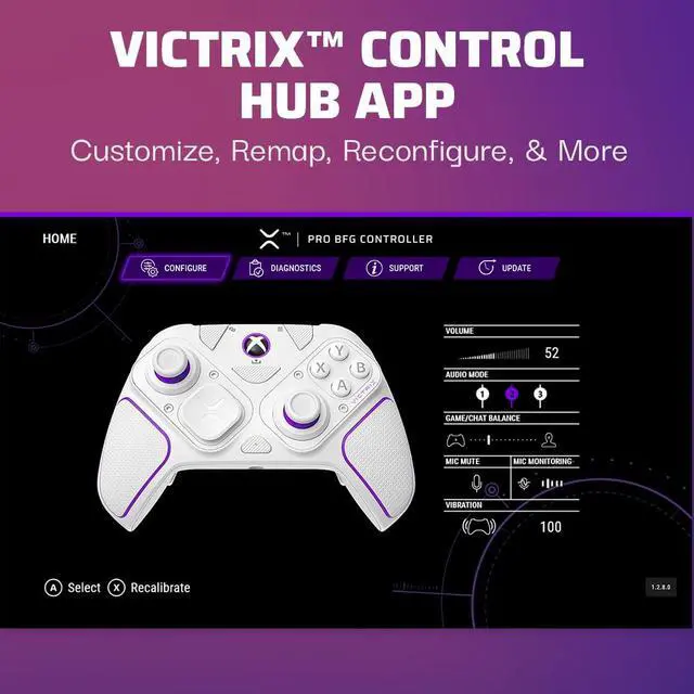 Patented Clutch Triggers with 5 trigger stops and hair trigger mode, 4 mappable back buttons, and even more customizations using the free Victrix Control Hub app