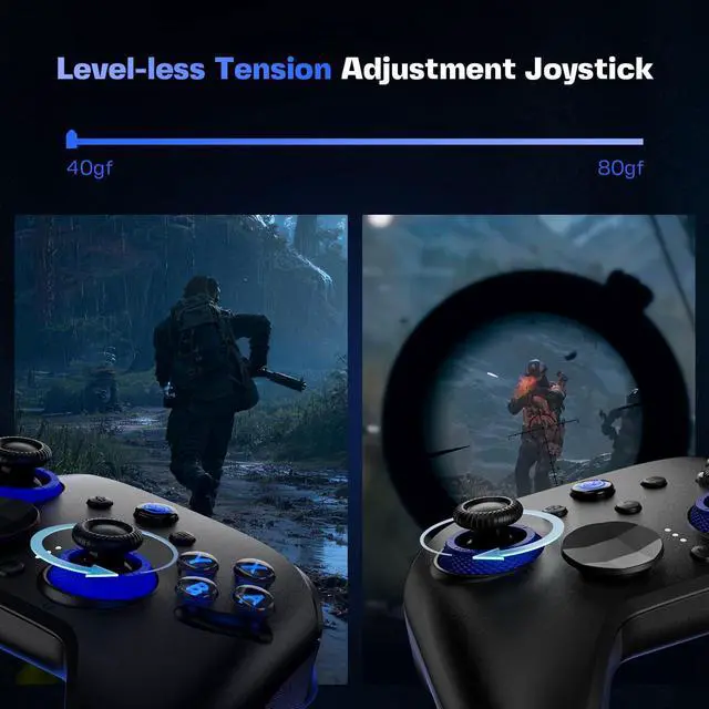 Pro-Level Adjustable Tension Joysticks A premium feature found only on professional-grade controllers. Dial in resistance from 40gf to 80gf with stepless adjustmentsofter for all-day comfort, stiffer for precision aiming. Faster centering, zero drift, and feel that outperforms the Xbox Elite Series.